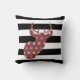 Modern Red Snow Deer Black + White Stripes Throw Pillow