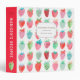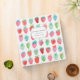 An modern recipe binder with a cute hand painted strawberry pattern.