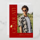 Celebrate your graduate in timeless, elegant style with this modern real gold foil graduation invitation. Set against a trendy red background, the design features trendy serif “GRADUATE” typography running vertically down the side, creating a refined focal point. A stylish graduation cap icon sits above the “R,” while the flowing tail of the letter transforms into a sleek tassel—leading the eye to a standout photo of the graduate.