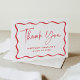 Express your gratitude with this modern red frame graduation thank you card. Featuring "Thank You" in elegant handwritten red script, this design is framed by a bold red wavy border against a white background for a stylish and contemporary look. Personalize the front with your name and graduation year for a unique and meaningful touch. Inside, showcase your horizontal senior photo at the top, with your custom message displayed in bold red lettering below. Perfect for high school and college graduates, this personalized thank you card adds a vibrant and sophisticated touch to your appreciation.