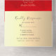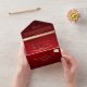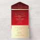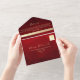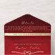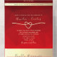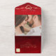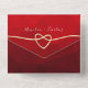 Bold and minimalist, this all-in-one red wedding invitation features a deep red geometric background with a modern rope heart motif and elegant gold typography. The integrated format includes an RSVP section, wedding website space, and a personalized photo and return address area on the back. A stylish and eco-friendly solution for contemporary weddings.