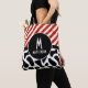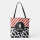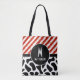 Modern Red White Black Pattern Monogram Custom Tote Bag