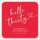 Modern Red White Hello 30th Birthday Square Paper Coaster