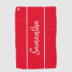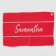 Get your game on with this Modern Red White Script Monogram Womens Golf Towel. It is an elegant minimal design with customizable colour background and white trendy hand lettering script font on the centre. Makes perfect gift idea for women golfers!