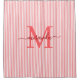 Add a touch of elegance to your bathroom with this personalised red striped shower curtain. Featuring a soft red and white striped background, the design is customised with your monogram initial and name in a fancy script font, creating a timeless and feminine look that feels both stylish and refined.