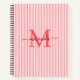 Modern Red & White Stripes Monogram Name Notebook