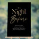 Set the stage for an unforgettable evening with this luxurious black and gold acrylic welcome sign, the perfect statement piece for your elegant rehearsal dinner. Designed on sleek, high-gloss acrylic and adorned with refined, modern typography, it exudes timeless sophistication. The captivating message, "The Night Before," evokes a sense of romance and anticipation, inviting your guests to share in the intimate joy of this special moment. Personalize the BACKGROUND COLOR to harmonize flawlessly with your celebration’s bespoke aesthetic, making every detail uniquely yours.
