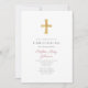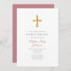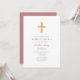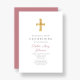 Modern Religious Cross Pink Stripes Christening Invitation