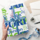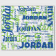 This modern repeating name blue and green font pattern personalized wrapping paper features their name or family name in a repeating word pattern with different trendy fonts on a white background. Your recipient will love to see their name gracing the front of their gifts! Order a roll for each family member's special birthday!