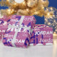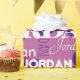 Modern Repeating Name Pattern Trendy Pink Purple Wrapping Paper