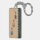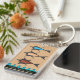This double-sided key fob showcases 2 variations of IconDoIt's cool Modern Retro design, each featuring 3 cartoon fish, styled to reflect the influence of atomic & aeronautical design, swimming above the suggestion of blue waves above black stripes on a natural cherry wood surface + 2 custom text fields for recipient's name or caption. Inspired by the post-WWII 'Atomic Age' cartoonists & graphic artists.