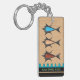 Modern Retro - 3 Fish on Cherry Wood Personalized Keychain