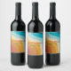 Modern Retro 70's Colourful Rainbow Waves Wedding Wine Label