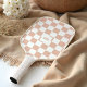 Introducing our modern retro tan beige chequered pattern monogram pickleball paddle – a perfect blend of style and performance for the discerning player. This paddle features a fun, nostalgic chequerboard design in blush pink tones, giving it a timeless retro feel with a modern twist. What's more, you can make it uniquely yours with a personalized monogram placed inside one of the chequerboard squares. Whether you're hitting the court for a competitive match or a casual game, this paddle offers a combination of playful design and high-quality craftsmanship to elevate your pickleball experience. Stand out and make a statement with this chic, customized paddle! Design by ©Moodthology Papery