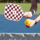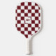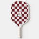 Modern Retro Chequered Pattern Custom Monogram Red Pickleball Paddle