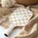 Modern Retro Chequered Pattern Custom Monogram Tan Pickleball Paddle