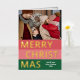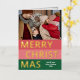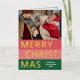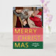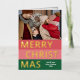Unique, trendy and simple chic seasonal Christmas Holiday greetings card featuring your favourite winter photograph and real gold foil MERRY CHRISTMAS text on a coral red, blush pink and forest green coloured bold stripes pattern. With room to customize or personalize with a photo and family name or names of your choice on the front, and personal greeting or holiday message on the backside of the card.