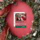 Unique, trendy and simple chic seasonal Christmas Holiday greetings card featuring your favourite winter photograph and real gold foil MERRY CHRISTMAS text on a coral red, blush pink and forest green coloured bold stripes pattern. With room to customize or personalize with a photo and family name or names of your choice on the front, and a customizable season greeting poem on the backside of the card, including your return address, city, zipcode and state.