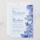 Modern Retro Dusty Blue Chinoiserie Floral Wedding Invitation
