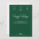 Modern Geometric "Happy Holidays" One Photo Holiday Card. Font and graphics in white. Background on front in back in dark green. Backside of card has room for additional custom text.