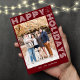 Modern Geometric "Happy Holidays" One Photo Holiday Card. Font and graphics in white. Background on front in back in dark red. Backside of card has room for additional custom text.