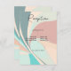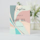 This wedding reception card design features a 1970s retro feel of peach, teal, tan, and aqua groovy swirls. Soft and feminine yet trendy. This card is part of the Modern Retro Groovy Peach Teal & Aqua Wedding Suite created by Simply Farmhouse Press.