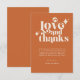 This Modern Retro Orange and Cream Wedding Thank You Cards are a great way to add a little more personalization to your big day. The colour palette of orange and cream gives this an extra modern, yet vintage retro look. Say thank you with Love & Thanks.