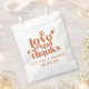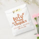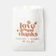 This Modern Retro Orange Wedding Favour Bag is a great way to add a little more personalization to your big day. The colour palette of burnt orange gives this an extra modern, yet vintage retro look. Say thank you with Love & Thanks.