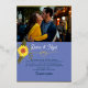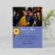 Modern - retro, elegant, floral, boho blue wedding invitation with real gold foil rope heart and photo of the couple.