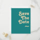 This modern retro | teal save the date invitation postcard is perfect for your simple vintage, colourful tropical boho summer wedding. Its unique bohemian mid-century font gives this design a classic minimalist groovy hippie vibe. If you're looking for a design that features bright, bold colours for your creative 70's beach wedding, then this product, and its coordinating wedding collection, are precisely what you're looking for. Feel free to change the colour add your own artwork, graphics, or photos. If you have any questions about the design of this product, please feel free to reach out to us!
