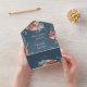 AVAILABLE WITH A QR CODE OR WITH OR WITHOUT DINNER CHOCE OPTIONS. Elegance and simplicity, with a touch of romance makes this wedding invitation unique. A soft dusty dark blue background sets the stage on this invitation, surrounded by a beautiful garden floral frame of dusty pink, cream, pale yellow, and teal. Created by Simply Farmhouse Press.
