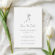 Announce your special day in a stylish and timeless way with this modern Save the Date card. The delicate line drawing of a romantic couple adds a soft and elegant touch. Clean typography and a minimalist black and white layout create a refined and contemporary look.