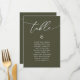 Wedding Dinner Guest Seating Table Chart Card, Modern Elegant Script. Customise the text and / or remove and fill in with your wedding party themed (sage green).