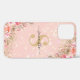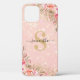 Elegant monogram iphone 12 case featuring a pink sparkle effect background, girly watercolor florals, faux gold glitter, your name, and initial.