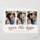 Handwritten Save the Date Copper Rose Gold Marble Multiple Photo Card with REAL rose gold foil in a modern font that evokes a romantic, boho feel. On the back is a trendy coppery faux rose gold foil style veins running through classic marble. Designed to use three of your favourite photos for added customization. Easily add your names and dates for a truly personalized design. Please contact us at cedarandstring@gmail.com if you need assistance with the design or matching products.