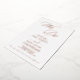 This sleek wedding invitation features modern rose gold foil script with unique industrial typography, creating a minimalist yet stylish look. The design blends contemporary elegance with a touch of modern boho flair, perfect for a chic celebration. Customizable in various colours, you can keep it simple and elegant or add your own graphics and artwork for a personal touch.