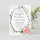 Modern Rose Gold Geometric Wedding Invitation. These greenery foliage invites will do the trick! this customizable invite features a modern geometric frame with faux Rose Gold glitter and black. The borders are adorned with green foliage such as eucalyptus, berries and pink and cream roses flowers. The sides are adorned with faux Rose Gold glitter. This makes a great modern foliage invite.