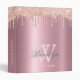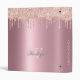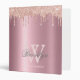 Modern Rose Gold Glitter Drips Monogrammed Office Binder