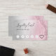 Elegant and stylish makeup artist loyalty card featuring faux pink rose gold glitter marble texture, silver texture and elegant calligraphy font.