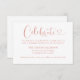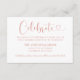 Modern rose gold and white (colours can be modified) wedding reception enclosure card features a stylish typography design with chic calligraphy script and a heart accent. The simple and elegant custom text that can be personalized to invite guests to "Celebrate" the wedding, including the reception location name, address, and arrival time.