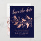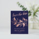 Modern rose gold navy blue save the date wedding announcement postcard