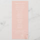 Clean and modern text is easily personalized on this chic, skinny format, wedding program. White feels sophisticated and romantic against soft blush pink when accented with a faux rose gold foil graphic of interlocked wedding rings.