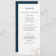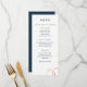 Clean and modern text is easily personalized on this chic, skinny format, wedding menu. Navy blue and white feels sophisticated and fresh when accented with a faux rose gold foil graphic of interlocked wedding rings. For an extra special touch, add your favourite engagement photo to the back using the "customize" options.
