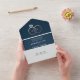 Modern Rose Gold Rings Navy Blue Wedding All In One Invitation