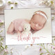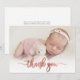 Modern Rose Gold Script Baby Photo Thank You Card