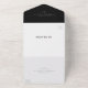 A modern all in one script wedding invitation with large rose gold metallic calligraphy and a tear-off response card.