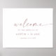 This modern rose gold script wedding welcome poster is perfect for a minimalist wedding. The simple blush pink rose gold colour design features unique industrial lettering typography with modern boho style. Customizable in any colour. Keep the design minimal and elegant, as is, or personalize it by adding your own graphics and artwork. Customize the poster with the name of the bride and groom, and the date of the wedding.