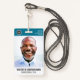 A modern and simple badge that does not distract from the important details. Easy to read from afar. Add a custom logo and company details. Add the employee's name, photo, and professional title. The bar of colour can be modified to match the company's official colours. At the back, add more information such as return address and the employee's ID number. Perfect for round shaped logos.
