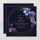 Modern Royal Blue Floral Wedding Invitation. It is a beautiful and unique dark theme watercolor floral wedding invitation. Customize all the text in this card. It is written in simple and elegant dark gold typography. You can customize it by pressing the (Personalize) button. If you want to customize it more then goto (Click to customize further) option.