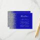 The left-hand edge of this elegant modern wedding reception enclosure card features a silver faux glitter design. The customizable text combines white handwriting, copperplate and italic fonts on a royal blue background. The reverse side features a matching royal blue and silver glitter design.